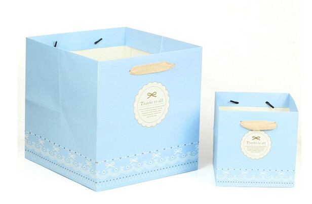 天空藍簡約型禮品白卡紙袋定制